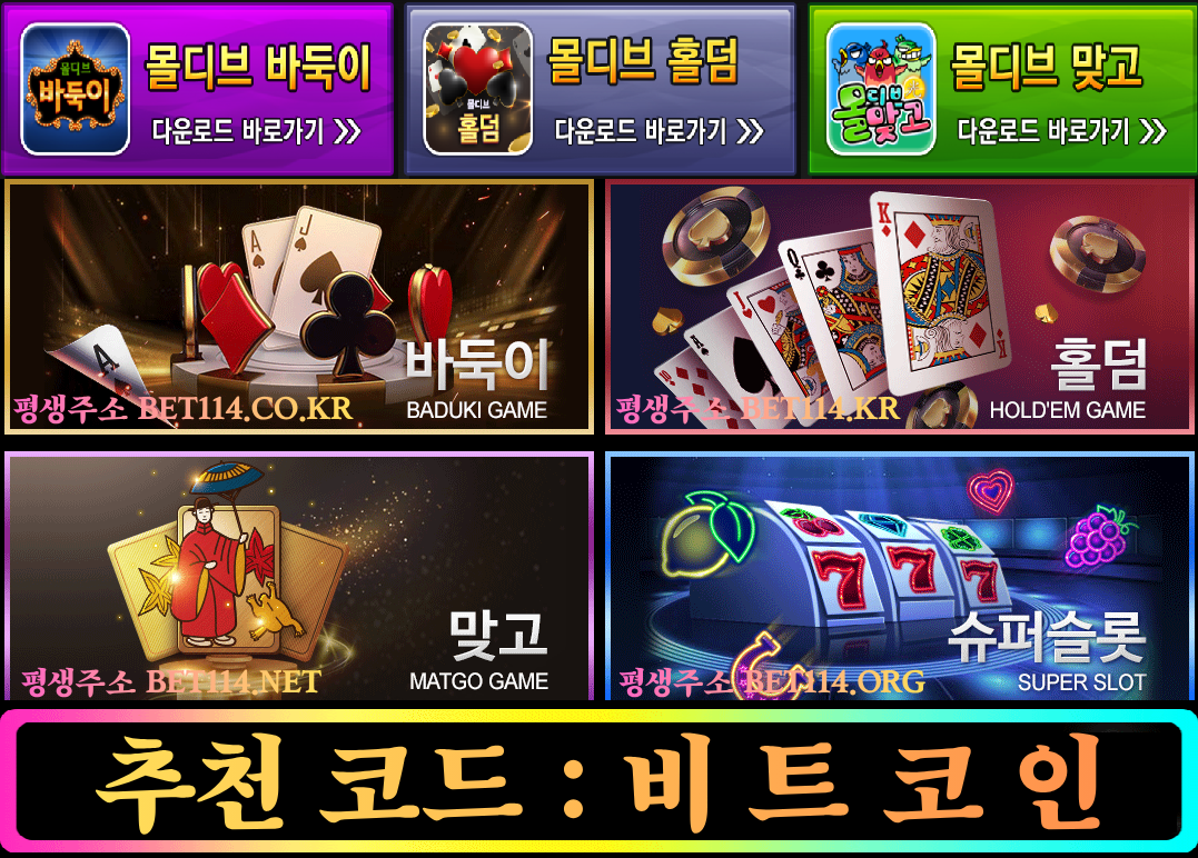 바카라, 바둑이, 홀덤, 맞고, 블랙잭, 룰렛, 포커 슬롯 머신, 등이 준비되어 있습니다.