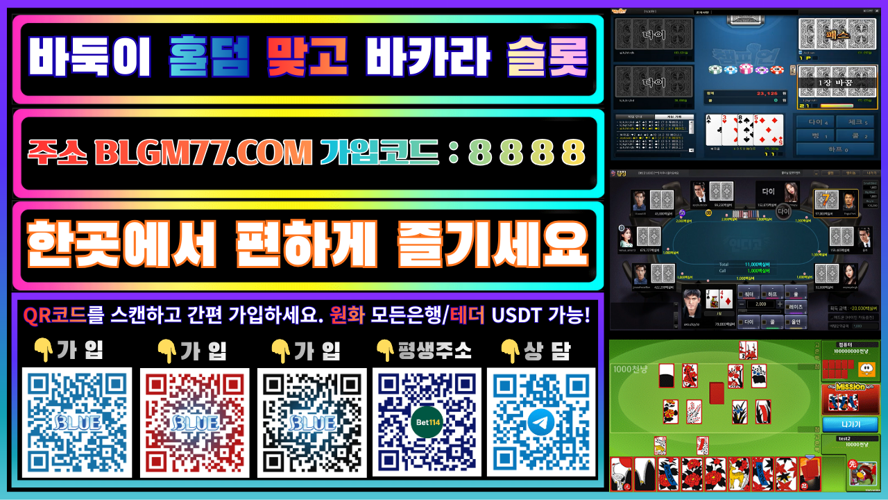 블루바둑이 공식 도메인 BLGM77.COM 가입 코드 : 8 8 8 8 통해 접속 가입하세요.